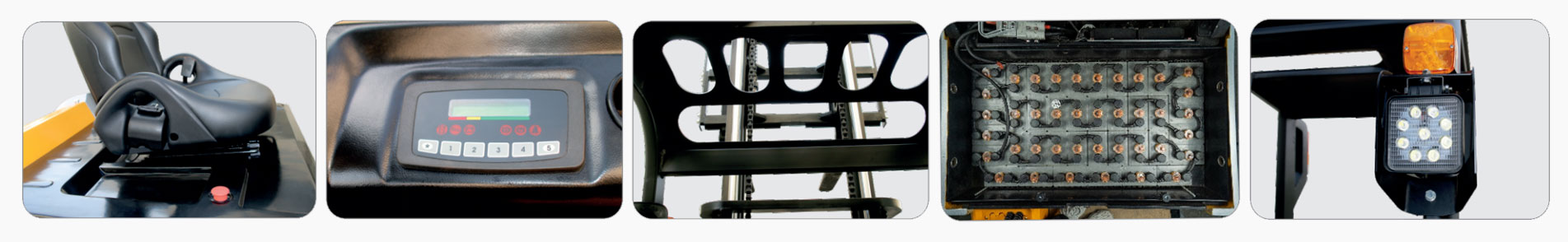 | 緊急按鈕開關使操作更加安全和可靠 | 交流電機減少了碳刷的更換 |
